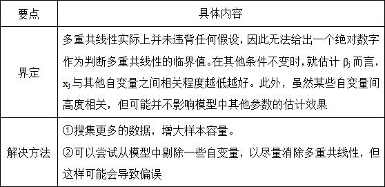 以此类推,在含有k个自变量的模型中,两者相等的特殊情况为: ① x 1 关于其他变量的回归中,从x 2 到x k 所有的OLS系数都为零; ② x 1 与x 2 ,x 3 ,…,x k 都不相关。但在实际中,这两个条件都不太可能成立。当从x 2 到x k 的所有OLS系数都很小,或者x 1 与其他自变量的相关系数较小时,x 1 影响y的多元回归估计值就会接近于简单回归估计值。