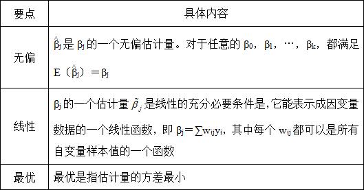 在高斯-马尔科夫假设(假设MLR.1~MLR.5)下, β 0 , β 1 ,…, β k 分别是β 0 ,β 1 ,…,β k 的最优线性无偏估计量。