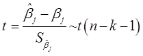 (1)当检验β j 是否等于某个非零常数时,则H 0 :β j =α j 。相应的t统计量为:t=( β j -α j )/se( β j )。