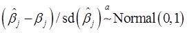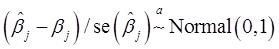 其中 r ij 是x j 对其余自变量进行回归所得到的残差。此时,称 β j 服从渐近正态分布。