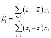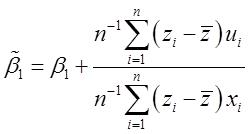 简单回归模型的形式为:y=β 0 +β 1 x 1 +u。令g(x)为x的任意一个函数,可知u与g(x)无关。对所有的观测i,令z i =g(x i )。假定g(x)和x相关,则β 1 的估计量就是β 1 的一致估计,表达式为:
