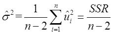 因此:E[SSR/(n-2)]=σ 2 。σ的自然估计量为: