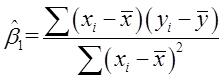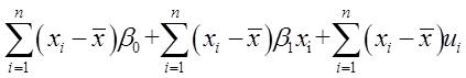 将y i =β 0 +β 1 x i +u i 代入上式的分子中,分子变为: