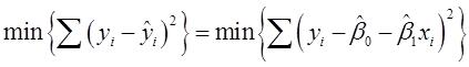 令{(x i ,y i ):i=1,…,n}表示从总体中抽取的一个容量为n的随机样本,满足:y i =β 0 +β 1 x i +u i 。第i次的残差是y i 与预期拟合值之差,即: u ( ) i =y i y ( ) i =y i β ( ) 0 β ( ) 1 x i 。OLS估计的方法就是要使残差平方和最小,即: