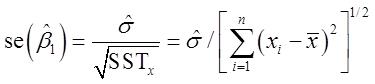 上式也称为回归标准误差(SER)。尽管 σ ( ) 不具有无偏性,但具有一致性。 β ( ) 1 的标准误差为: