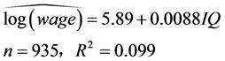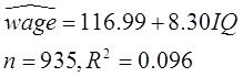 IQ提高15个单位导致工资变化8.3×15=124.5(以1980年的美元计价)。IQ不能够解释大多数工资波动,薪水的波动中,仅有9.6%是由IQ解释的。