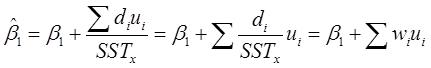 (v)用误差项代替残差,重新计算得到u i 的和为110.74,x i u i 的和为6.46。两者都不接近0,并且没有理论说明它们接近于0。