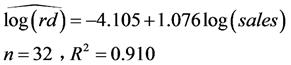 rd关于sales的弹性估计值是1.076,说明sales每增长1%,rd将会增长1.076%。