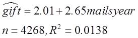 (iii)用OLS方法估计模型gift=β 0 +β 1 mailsyear+u,并用方程的形式,连同观测的次数和R 2 报告结果。