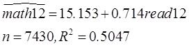 答: (i)样本中有7430个学生。math12的平均值为52.13,标准差为9.46。read12的平均值为51.77,标准差为9.41。