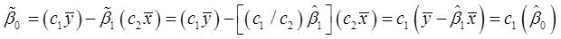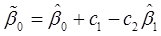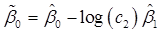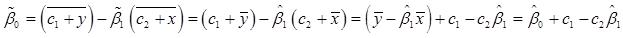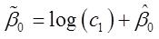新的截距项为α 0 +β 0 ,斜率不变为β 1 。