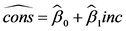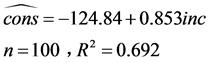 利用对100个家庭的年收入和消费的观测(均以美元计),便得到如下方程: