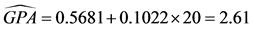 此处截距没有一个很好的解释,因为对样本而言,ACT并不接近0。如果ACT分数提高5分,预期GPA会提高0.1022×5=0.511。