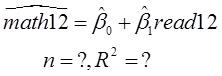 (ii)用read12对math12进行简单回归,从而得到OLS截距和斜率的估计值。用下面的形式报告结果: