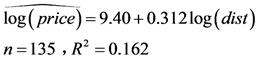 答: (i)符号为正,与预期相符。log(dist)的系数表示距离焚化炉的距离越远,价格就越高,价格的距离弹性是0.312,即距离远1%,价格上升0.312%。