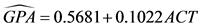 (i)利用OLS估计GPA和ACT的关系;也就是说,求出如下方程中的截距和斜率估计值:
