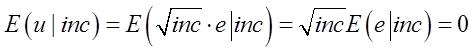 式中,e为一个随机变量,且有E(e)=0和Var(e)=σ e 2 ,假设e独立于inc。