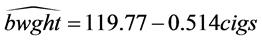 (iii)要预测出生体重为125盎司,那么cigs=(125-119.77)/(-0.514)≈-10.18。