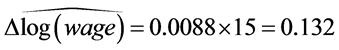 (iii)现在再估计一个模型,其中IQ提高一个单位,工资的变动百分比相同。如果IQ提高15个单位,预期工资提高的百分比大约是多少?