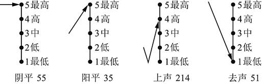 (3)声调是指依附在声韵结构中具有区别意义作用的音高变化。