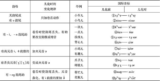 ② [-r]:出现在卷舌韵和儿化韵的音节末尾卷舌成分[-r]就是小于一个音素的音位变体。