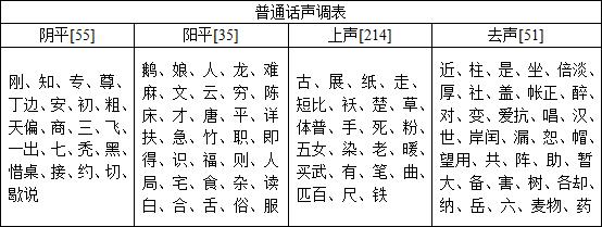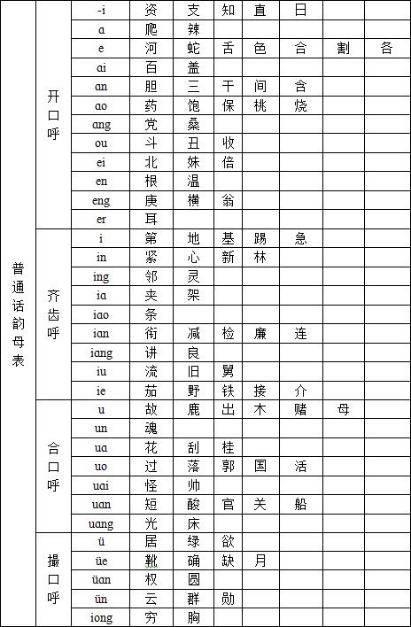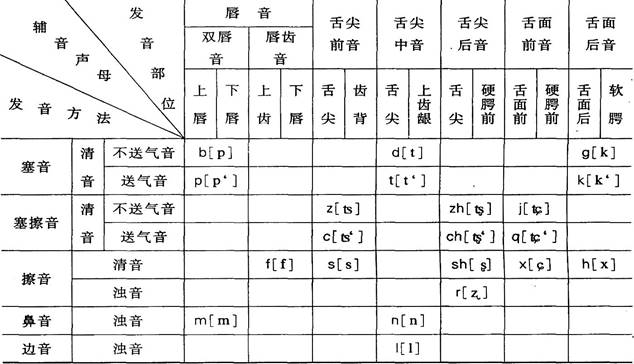 (2)声母总表如下: