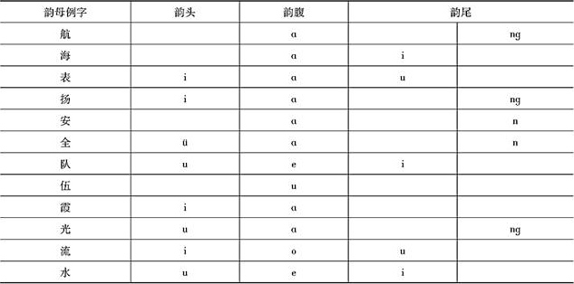 (7)韵母位于音节的后段。由元音或元音加辅音构成。