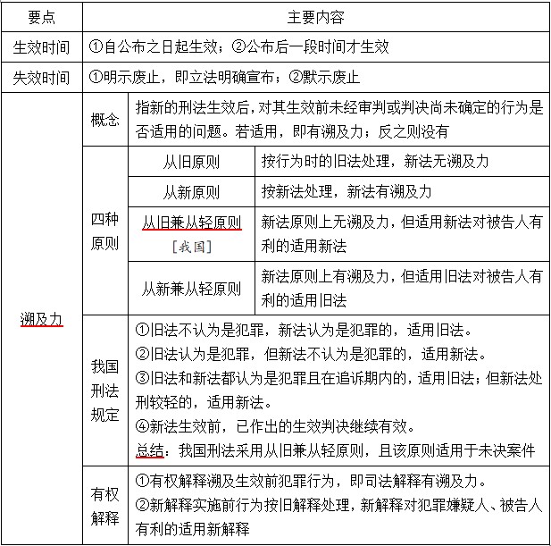 表3-4 刑法的时间效力