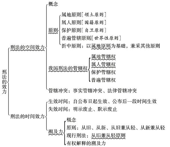 本章主要介绍刑法的效力,包括空间效力与时间效力。学习时,要熟悉空间效力所涉及的各项管辖原则,掌握我国刑法关于各项管辖权的规定,理解刑法溯及力的概念,并结合法律、司法解释掌握“从旧兼从轻原则”的适用。本章主要考查选择题、概念题和简答题,复习时要整体把握基本概念和具体内容。