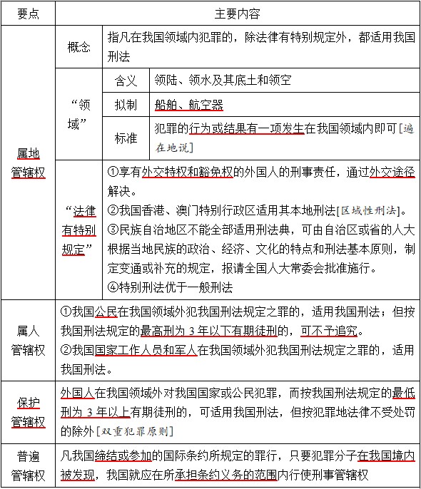 表3-2 我国刑法的管辖权