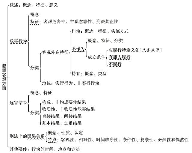 本章主要介绍犯罪构成要件中的犯罪客观方面,比较重要。学习时,要掌握各客观要件即危害行为、危害结果与因果关系的概念和特征,且应重点掌握不作为的概念、特征和义务来源。对于不作为犯罪的理解可借助历年真题中的案例加以研究学习。本章各种题型都有可能考查,要理解掌握。
