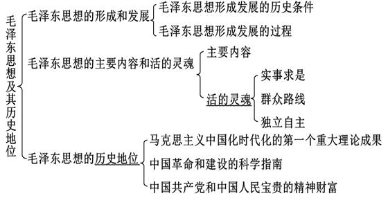 贯穿于毛泽东思想各个组成部分的立场、观点和方法,是毛泽东思想活的灵魂,它们有三个基本方面,即 实事求是、群众路线、独立自主 ,具体内容见表1-4。