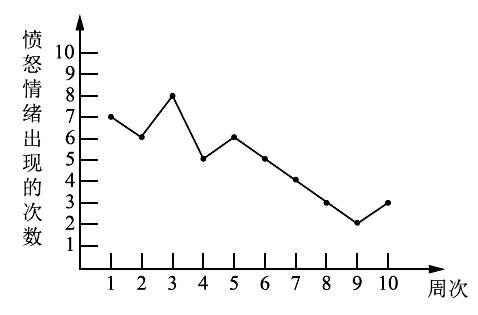 (3)分析和比较。将基线期和介入期的数据按测量时间和顺序制成图表,将每个时期的数据资料进行连接,呈现数据的变化轨迹和变化趋势,并将基线期和介入期的数据进行对比。如果两个数据不同,一般可以认为是介入本身作用的结果。本案例中,大勇每周的愤怒情绪出现的次数在基线期和介入期明显减少。