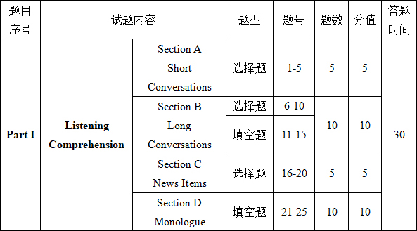 (1)题型的出题方式较为稳定,基本可归纳为四个方面:短对话、长对话、新闻、摘要填空。需要说明的是,虽然每年题型的出题形式会保持稳定性和连续性,但也会在原先基础上进行创新和微调,考试的最新题型可以参考考前官方公布的样题。