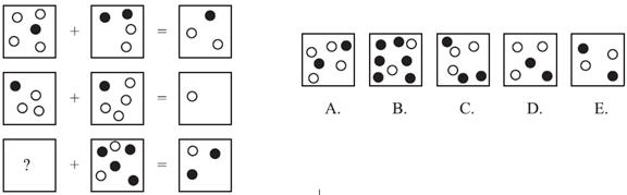 【解析】 每一行中,两个方格中黑色圆点数量相减,即可得到最后一个方格中黑色圆点的数量。白色圆点数量相减,即可得出最后一个方格中白色圆点的数量。