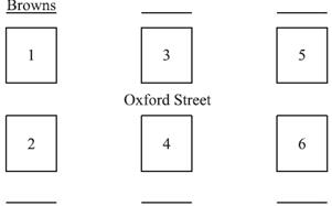 The Greys live between the Blacks and the Whites on the even side of Oxford Street. The Greens live opposite the Blacks. The Browns live in No. 1. The Blues live in a house with a higher number than the Whites.