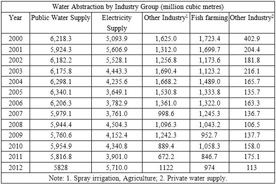 Environment problems have caused public concern recently. The table below describes water use in England and Wales.