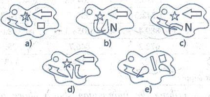 【解析】 依据图片找规律,每次变化时,有重叠部分的两个图形被两个新图形取代,依次变化,得知d为正确答案。
