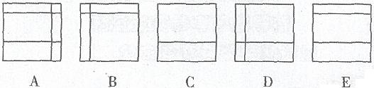 【解析】 观察所缺部分左侧的方框可知,缺少的方框中也应有两条横线。观察所缺部分上面的方框可知,所缺部分没有竖线,故E项正确。