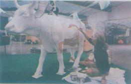 69 She designed a reclining cow to reflect the sponsor’s promotion of “home from home” with a built-in couch and standard lamp.