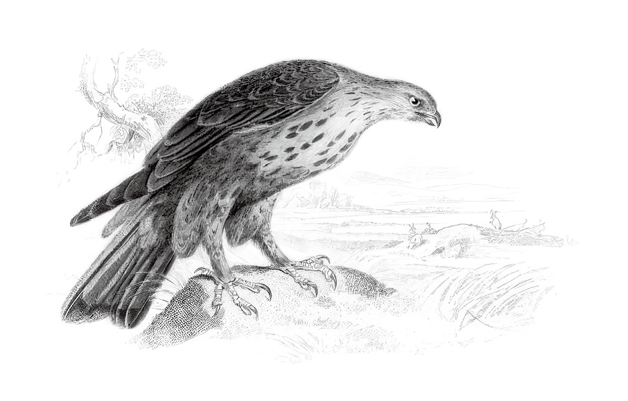 这时,前方一只毛脚鵟在草原上空盘旋。它停了一会儿,又像翠鸟那样在低空飞翔。突然,毛脚鵟像一颗长翅的炸弹,头朝下,迅速地朝地面冲来,落到了一片沼泽地上,再也不见它腾空飞起来。我相信,它一定是捕到了一只惊慌失措的“地下工程师”,正在享用美餐呢。可怜的田鼠,它再也没有机会等到晚上,看这原本有条有理的世界被扰乱得面目全非了。