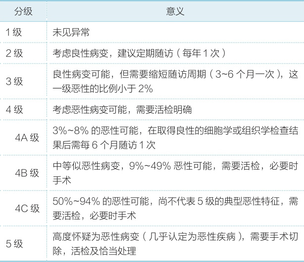 表2-0-2 甲状腺结节超声检查分级意义解读