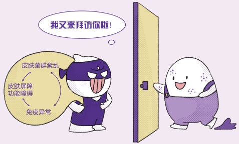 菌群多样性下降,金黄色葡萄球菌等增加,导致人体代谢等功能异常,使皮肤炎症进展,从而引起疾病复发。