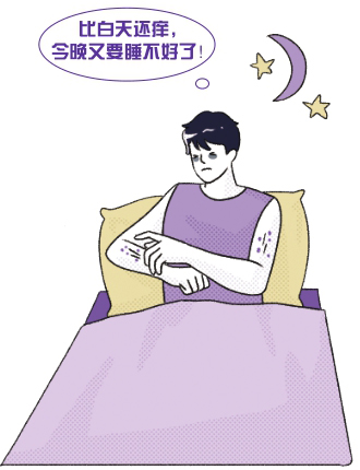 特应性皮炎患者常因为瘙痒而睡不好觉,往往前半夜钻心地痒,让人难以入睡。