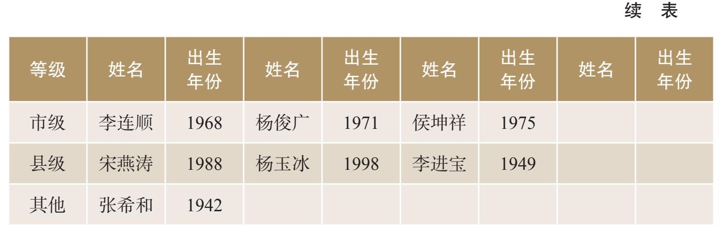 表1-8 非物质文化遗产项目代表性传承人姓名和出生年份