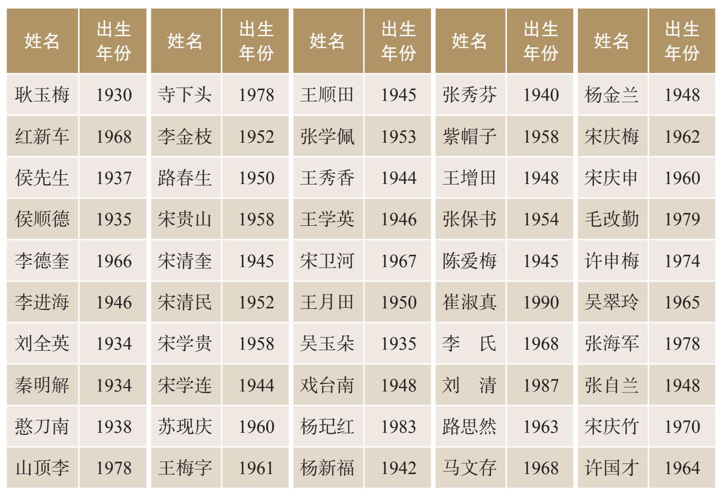 表1-7 在正月古庙会摆摊的手艺人姓名和出生年份