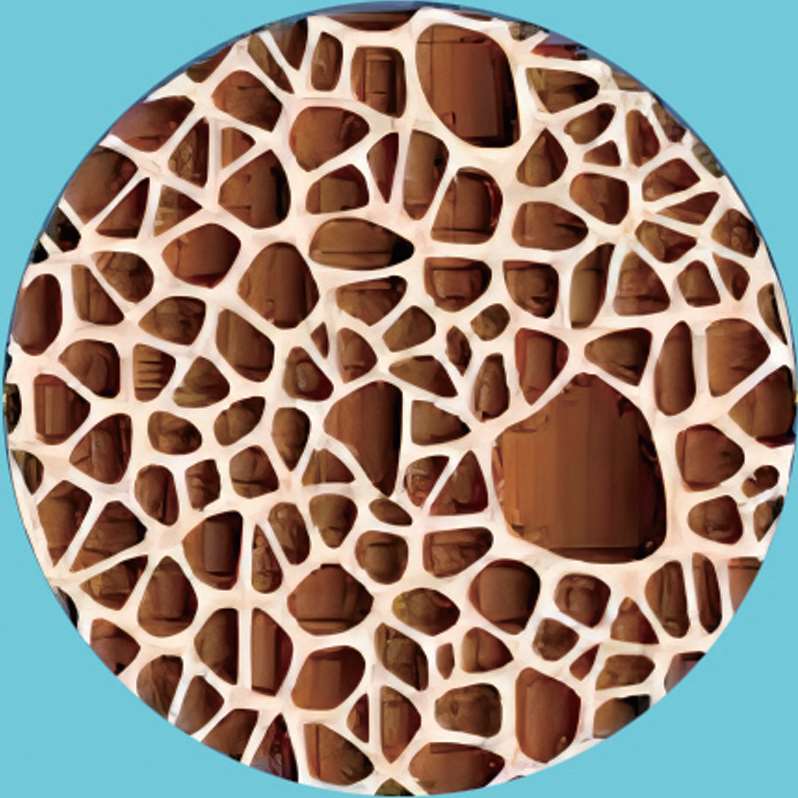 骨质疏松是一种全身性骨病,它悄悄地减少你的骨量,破坏骨组织的微结构,让你的骨骼变得脆弱,增加骨折的风险。正常的骨和骨质疏松患者的骨显微结构见图1和图2。