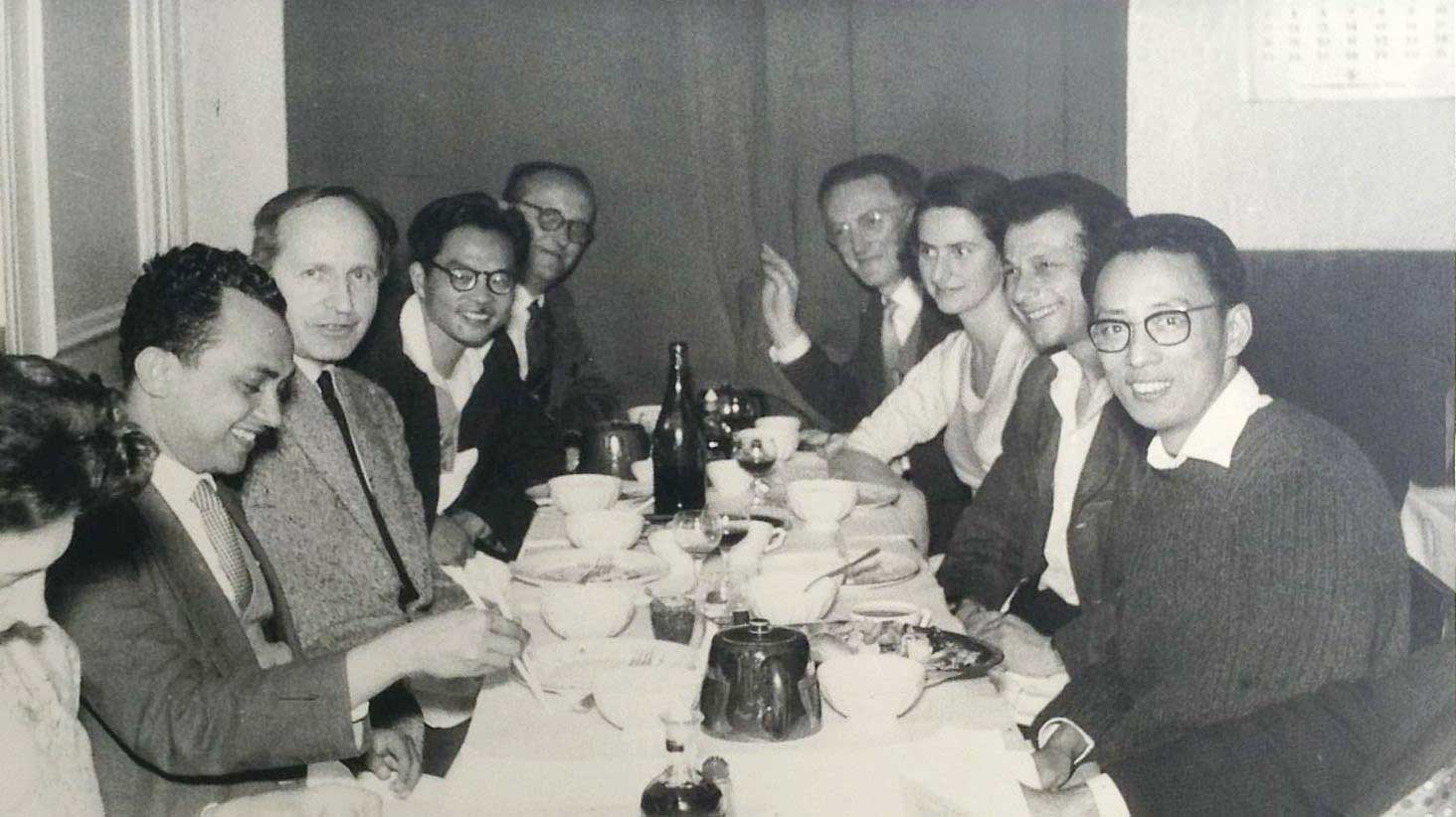 吴文俊(左四)与埃瑞斯曼(左三)在巴黎(1958年)