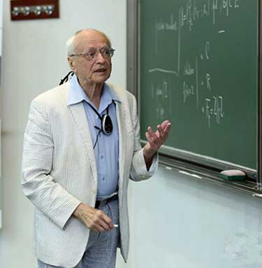 塞尔完成了同伦论的一次革命,1954年在第14届国际数学家大会上获得菲尔兹奖,那时他才27岁,成为迄今为止最年轻的获奖者。1955年,塞尔应邀访问日本,留下一张珍贵的照片(上图)。2000年,塞尔获得沃尔夫奖(Wolf Prize),2003年获得首届阿贝尔奖(Abel Prize)。2017年4月,清华大学数学学科建立90周年之际,丘成桐数学科学中心特邀塞尔来校举办讲座。一个小时的讲座,91岁高龄的塞尔完全使用黑板板书,简明干练,一丝不苟(上页右图)。
