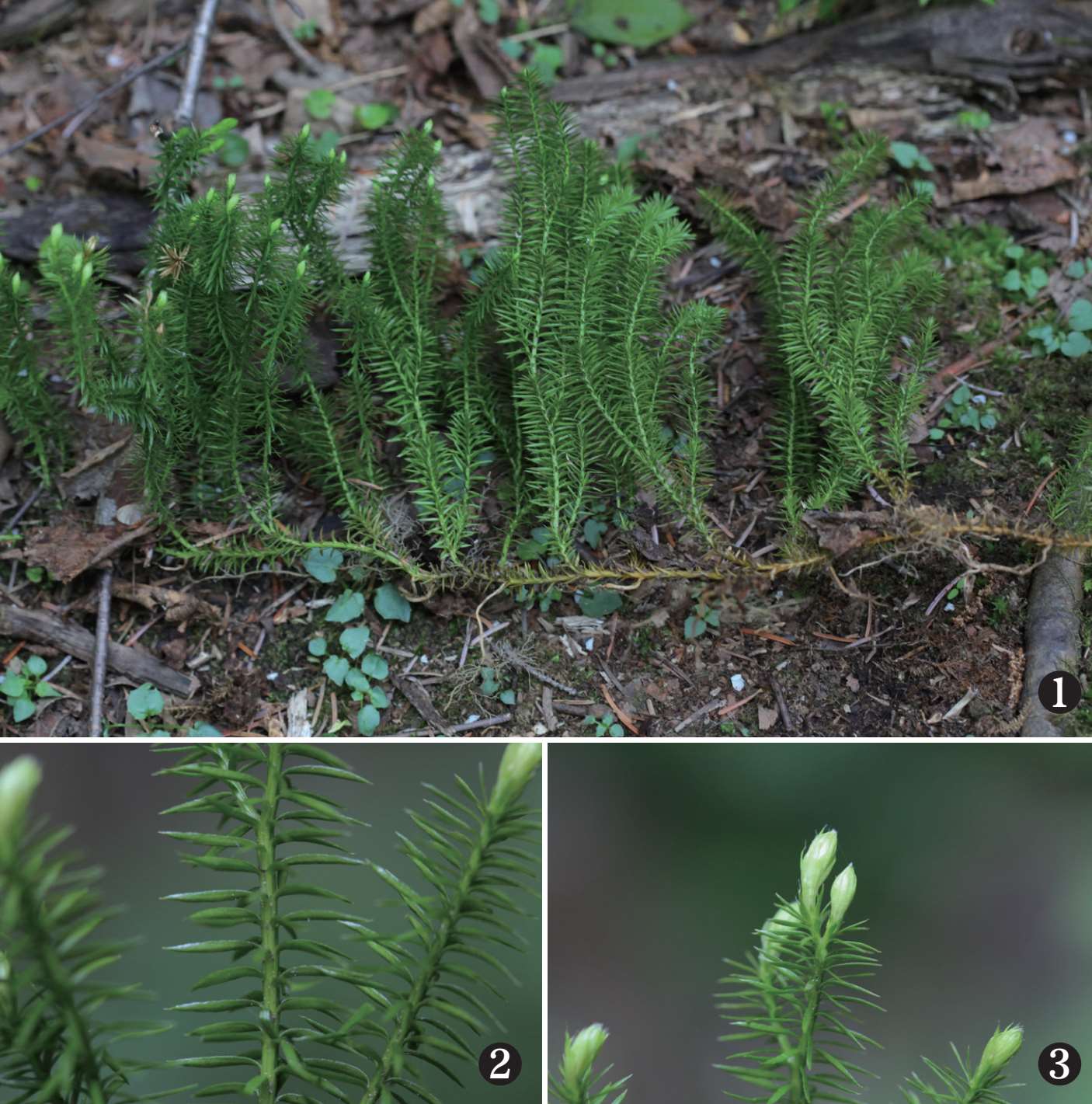 1. 多年生草本,茎直立或斜生,生境为林下湿地或苔藓上;2. 叶螺旋排列,密生,钻形,先端渐尖,全缘;3. 枝上部常有芽胞。